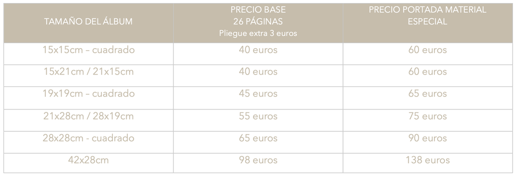 Una buena manera de conservar las fotografías después de una sesión, es haciendo un álbum de impresión digital con tapa dura. Con un resultado de gran calidad y duradero. Hay diferentes tamaños disponibles, cuadrados, verticales o apaisados. Mínimo ha de ser de 26 páginas, lo ideal para completar el álbum sería una sesión con unas 30 fotos. Con un grosor de 1 centímetro y medio aproximadamente. Hay muchos materiales disponibles para la portada y contraportada, símil piel y madera, corcho y lino, éstos tienen un precio adicional, aunque la opción más básica queda muy fino y elegante.